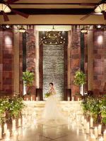 照明を落とし光をあえて抑え、キャンドルをコーディネートすることで、幻想的な空間の演出も可能です。100本以上のキャンドルに包まれた厳かな雰囲気の中、おふたりが紡ぐ一生の誓いは、ゲストとおふたりの心に深く刻まれることでしょう。