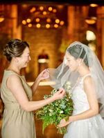 愛する娘を守るためであり親御様からの愛情の象徴でもあるベールダウンの演出も、あたたかな雰囲気のあたたかなレンガ造りのチャペルが盛り上げます。 挙式が始まる前にチャペルの正面と扉に、ゲストの皆さまや親御様へ感謝のメッセージ映像を映し出すことも可能。