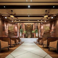 【連続受賞*日本の美しいチャペル100選出!】レンガ造りの温かさ、柔らかな光と自然を感じる空間が特徴!横長設計だからゲストと距離が近く、一体感溢れる挙式が叶うのも魅力♪感動のチャペルムービーも体験可◎