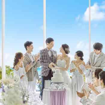 挙式後はビーチサイドガーデンで、波音を聴きながらセレモニーを楽しんで。