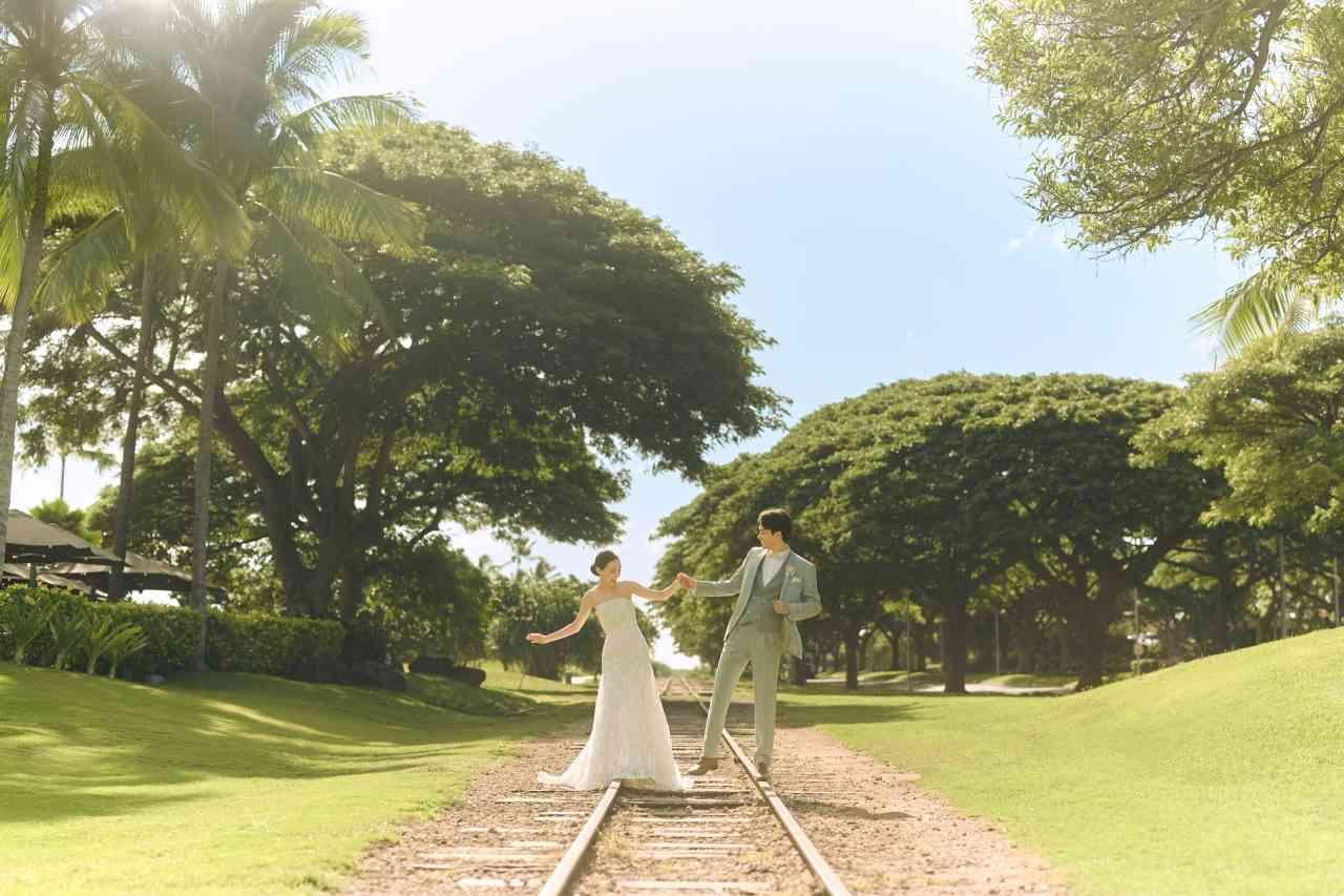 ハワイに線路があるのはこのコオリナエリアだけ。コオリナ唯一の写真撮影を楽しめます。
