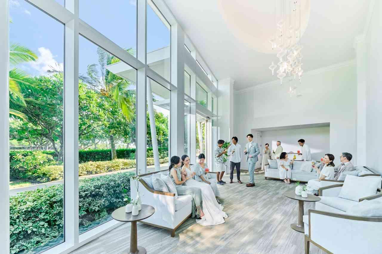 ゲスト専用のプライベートロビーを完備。 ゲスト様もゆっくりと過ごしていただき、おふたりの晴れ姿を楽しみにしている皆にファミリーミートでお披露目も可能