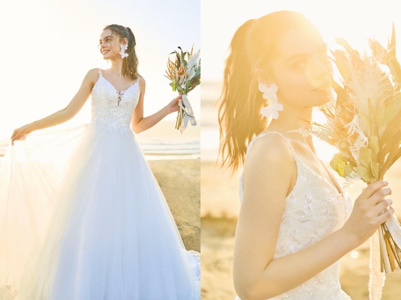 目指したのは、リゾートウェディングのための理想的なドレス。 “ 完璧なドレスを着て、人生で1番に輝きますように ” いつもその気持ちを胸に、最高のドレスをあなたの特別な1日に…。