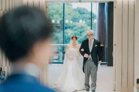 挙式の入場はお互いの両親と一緒に。新郎はグローブ&チーフのセレモニーを。新婦はヴェールダウンを行いました。「ゲスト全員にふたりからの想いを伝えたい」という希望を叶えるため、ゲストとの思い出を振り返るダーズンフラワーの儀式も。さらに、リングボーイに大切な指輪を新郎新婦のもとへ届けてもらいました。ゲスト参加型の人前式は、ふたりらしく、温かく、一人ひとりの心に残る時間になりました。