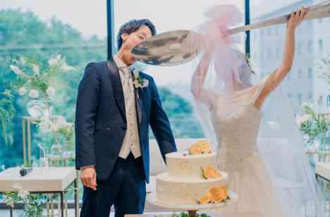 挙式後はガーデンでアフターセレモニー。目白駅徒歩1分の立地にありながら、緑に囲まれたガーデンを自由に使えるのもブラスブルー東京の魅力のひとつ。フラワーシャワーやコスメ&ブーケトス、テニスボールトスなどゲストと過ごす時間を楽しみました。披露宴では、オープンキッチン&シェフの料理説明という珍しい演出にゲストから驚きの声があがり、ビッグスプーンのファーストバイトに会場も一段と盛り上がりました。