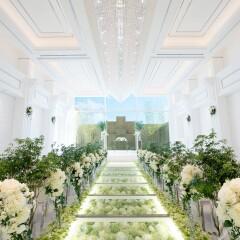 おふたりには本番当日のように新郎新婦役となっていただき、入場体験をしていただきます。純白空間とエリアでも希少な【フラワーバージンロード】のチャペルに思わず息を呑むお客様も!