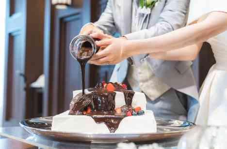 チョコソースたっぷりのウエディングケーキ