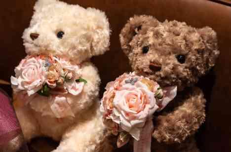 披露宴も終盤、おふたりから親御様にお渡しされた記念品はウエイトベアでした。ウエイトベアは、結婚して新しい人生を歩み始めるおふたりの生まれた時の重さを味わってもらい、親御様が子供を始めて抱いた時の気持ちを思い出して欲しいという願いがこめられているそうです。親御様から自立しこれから新しい家庭を築いていく人生の大きな節目である結婚式の日に、ピッタリのアイテムです。