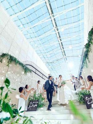 全天候型の大階段は、ゲストからの祝福を満喫する瞬間!!「おめでとう」「ありがとう」の言葉を交わしながら歩く階段は一生忘れなれない