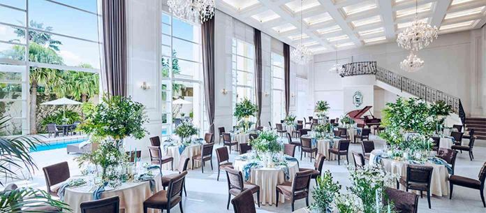 ゲストからの祝福がフラワーシャワーとなり降り注ぐ、全天候型グランステア
