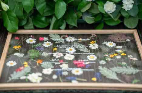 新郎様のご入場後にお父様と一緒にご入場したご新婦様。お母様からはベールダウンのセレモニーをおこなって頂きました。バージンロードを歩まれる時には可愛らしいフラワーガールに登場していただき「可愛い」の声がチャペルいっぱいに広がりました。結婚証明証はおふたりのオリジナルの押し花。皆様にお披露目して完成セレモニーをおこないました。