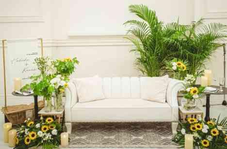 「結婚式では好きなヒマワリをたくさん使いたい」そんな思いを叶えるコーディネートをつくりあげたおふたり。会場は黄色とグリーンがいっぱいのコーディネートに。もうひとつのこだわり「野球」は野球の観戦チケット風に作成したエスコートカードや、シーティングボードなども手作りでご準備。パーティーの演出にも野球を取り入れ、会場はこだわりアイテム一杯の空間に!