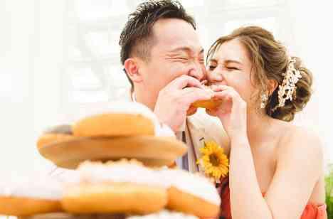 たくさんのドーナツを積み上げ土台にも飾り可愛らしく華やかに仕上がったオリジナルの「ドーナツタワー」丸いカタチと言えば“縁”“和”“指輪”など幸せの象徴を連想させてくれる結婚式にはピッタリなアイテム。そんなドーナツにおふたりで一緒にかぶりついたシーンはとても可愛らしくゲストからはたくさんのシャッターが!