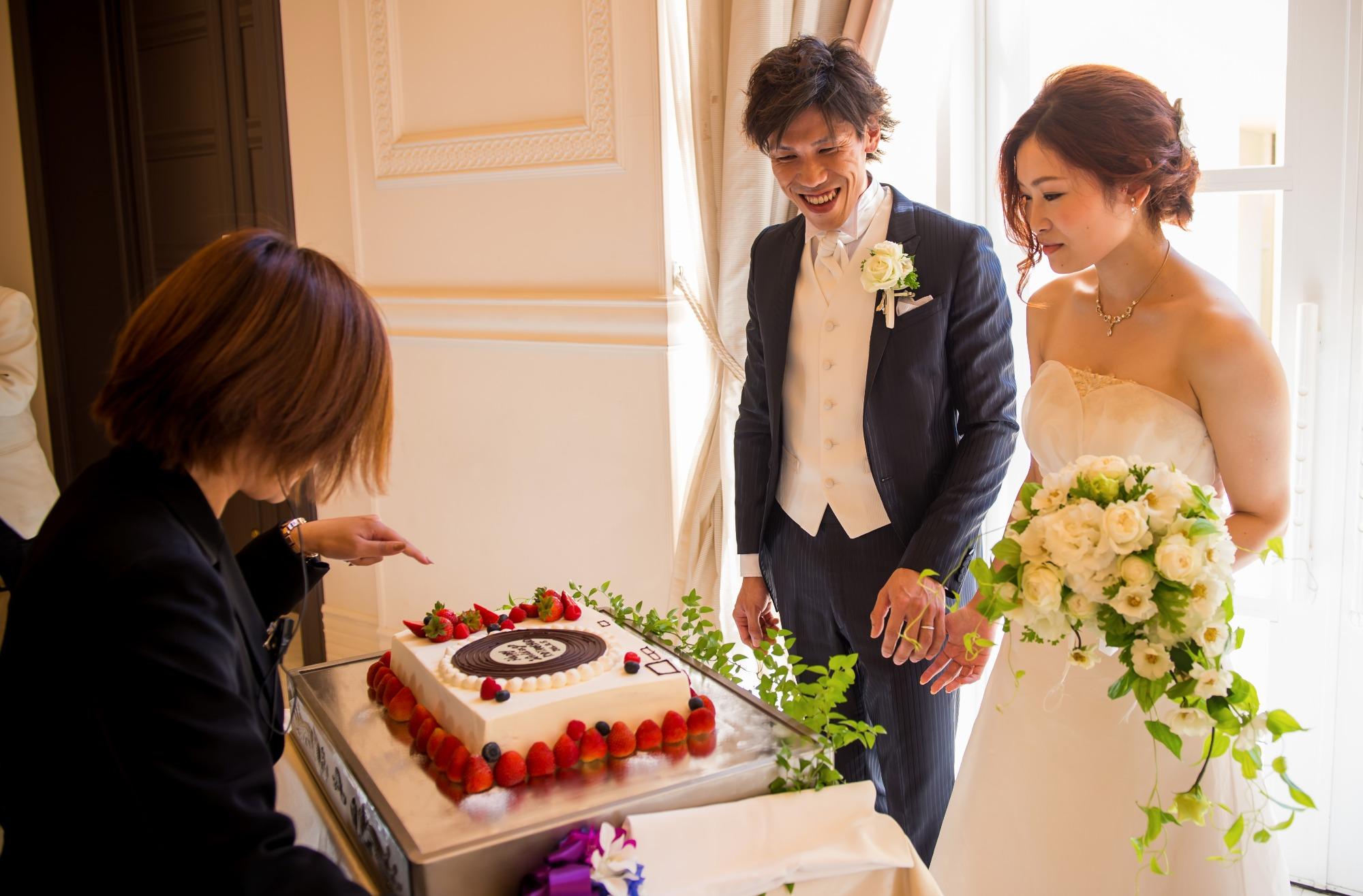 おふたりのテーマはアットホームウエディング。そしてモチーフはレコード!レコードの機会を再現したウエディングケーキは細かいディティールにもこだわり、何度も何度も専属のウエディングプランナーと打合せをしました。おふたりが完成したケーキを見るのは本番、完成度の高いケーキを見てプランナーも思わずおふたりにアピール!