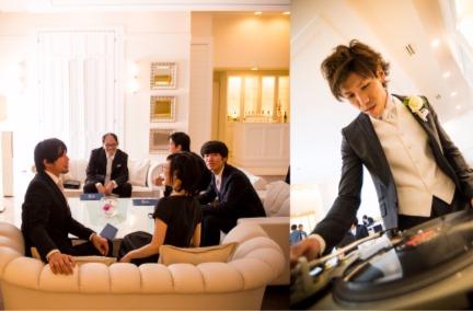 音楽が好きな新郎様。趣味で集めているレコードを使ってゲストのお控室を賑やかに演出♪ゲストの皆様のことを思ってこだわり抜いたセレクトは、楽しいおしゃべりの声と共にお控室を満たしていました。