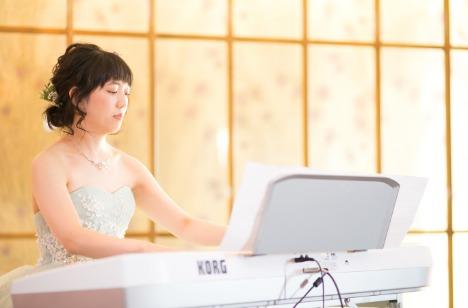ご新婦様の夢でもあった「結婚式でのピアノ演奏」。 今まで会場にお花と共に飾ってあったギターの出番。 新婦様のピアノの演奏と、新郎様のギターとでの最高のステージ。 ちょっと間違えちゃったけど、大成功!