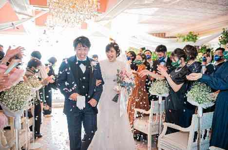 こんな時だからこそ、絆を感じられるものにしたいと、ゲストとの距離を大切にしつつマスクコードを合わせ対策も徹底、工夫いたしました。フラワーシャワーでは笑顔溢れ、花道の完成♪今叶える「おふたりらしい」感動のセレモニーが実現いたしました。