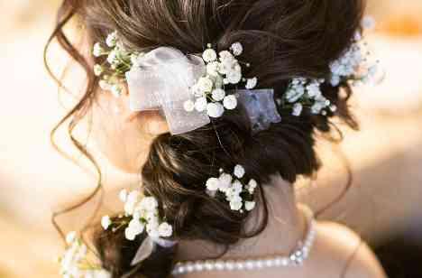 新婦様の柔らかい笑顔にはキラキラしたビジューよりもお花でアレンジしたナチュラルなヘッドドレスをご提案♩ 会場のコーディネートともバランスを考えてそこまで主張の強くないデザインと、オーガンジーをプラスする事でより柔らかさを演出☆