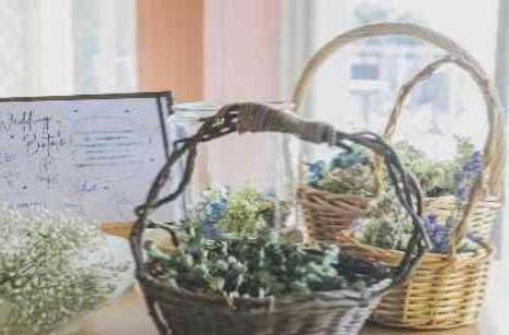 ウエルカムスペースもお二人らしいアイデアが盛り沢山。お写真や小物など遊び心もふんだんにお洒落にコーディネイト。またウエディングボトルをご用意し、「お二人を見守る」という想いを込めて、ゲストにはお好きなドライフラワーをお好きなだけ入れていただきボトルをいっぱいに。ゲストの皆様と創り上げる結婚証明書です。挙式ではボトルに署名し、永遠を誓いました。