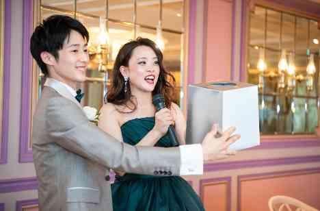 2部制のスタイルを選ばれたお二人は、第一部ではゲストと食事や寒暖を楽しむ落ち着いたパーティと、第二部ではご友人をお招きし、たくさんのゲームを楽しむパーティと全く雰囲気の異なるパーティをご用意されました。男性ゲストを集めてのゴムパッチン!受付で用意したチケットの半券を使用しての抽選会と楽しいイベントが盛りだくさん♩最後に新郎様から新婦様へ花束のサプライズが☆会場の皆様全員が感動に包まれました。