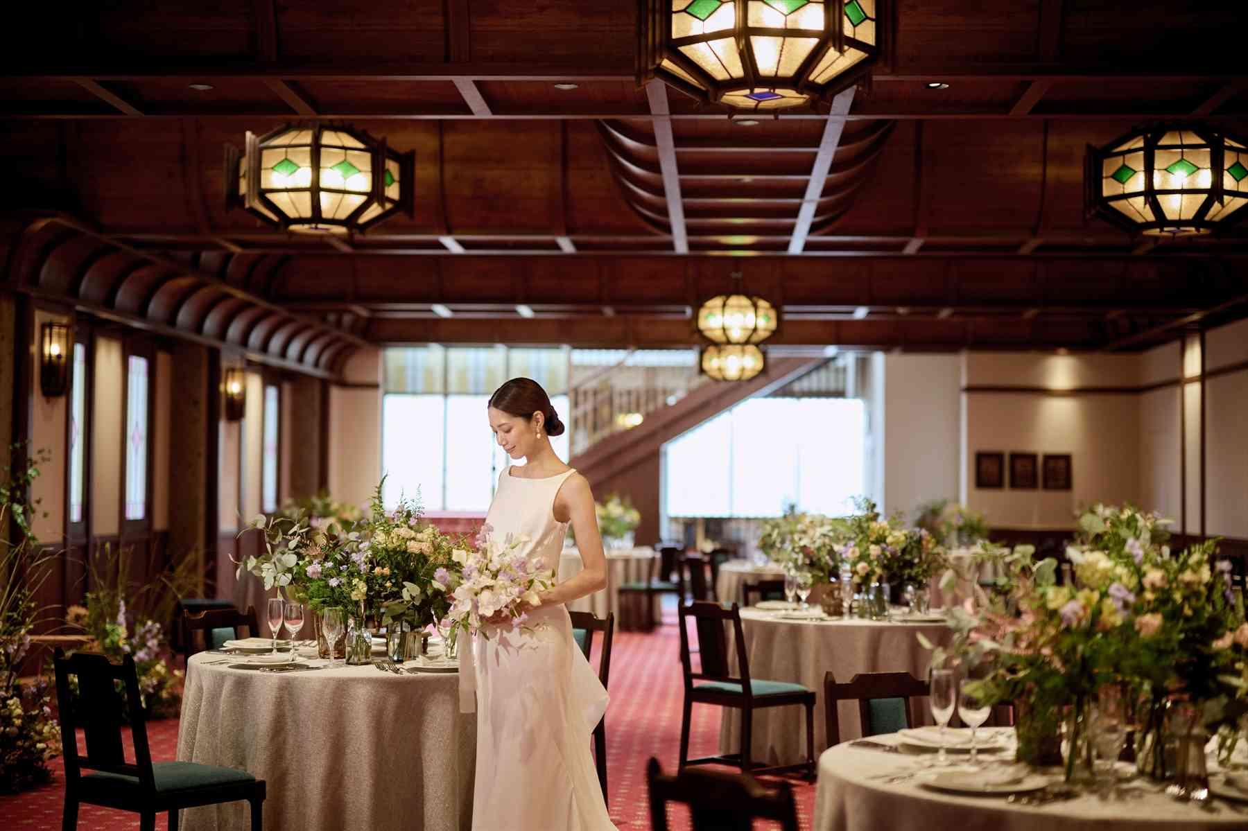 ご縁を招き、宴を共にする堂“かぐわ”。記憶をつなぐレトロモダンが香る館。日本の伝統技術と西洋文化の世界観が調和したクラシカルな空間。デザイン感度高めのおふたりにおすすめ〈ご利用人数:2〜160名様〉