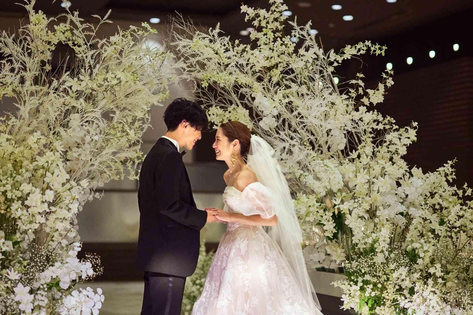 特別な1日をゲストと一緒に楽しむ体験型シアターをコンセプトにした会場。 200インチのスクリーンで上映されるふたりの人生を綴った映像や、光と音楽による演出で感動を体感〈ご利用人数:2〜280名様〉