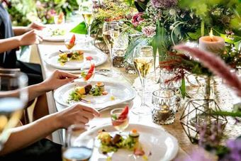 緑と木々に囲まれたパーティ会場は2名から貸切可能です。おふたりだけでゆっくり記念日を過ごしても良し、大切な人を招いて感謝の気持ちを形にしても良し。周囲を一切気にすることなく自分らしく過ごすスローウエディング。一生記憶に残る一日をお約束します