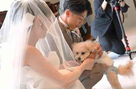 挙式では、わんちゃんがリングドッグとして登場!小さな足で一生懸命おふたりのリングを運ぶ姿に、チャペル中から笑顔がこぼれます。ゲストの方々も思わずカメラを向けたくなるほどの可愛らしさで、会場全体がしあわせな空気に包まれました。おふたりらしい“あたたかい時間”が流れる、心に残る挙式にすることができました。