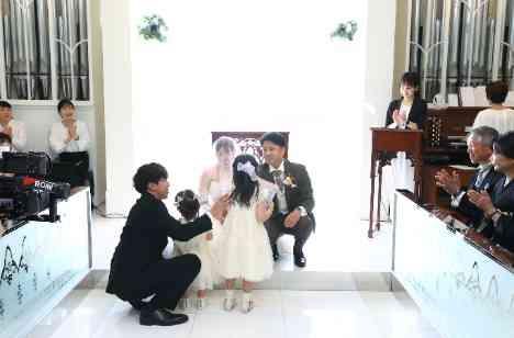 挙式では愛らしいリングガールが登場し会場中が笑顔に包まれました。ゲストの皆様に結婚の承認をいただく人前式は、あたたかい拍手と祝福の気持ちがあふれるおふたりらしいアットホームな時間に。誓いの言葉をゲストの方に読み上げていただくことでより互いの想いを誓い合うことができました。海を臨む開放的なチャペルだからこその柔らかな光に満ちた誓いのシーンが広がりました。