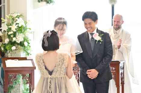 挙式ではおふたりにとって大切なキューピットへサプライズでリングガールとして登場。思いがけない演出にご友人さまも驚きと感動で涙がこぼれ、やさしい空気が会場中に広がりました。大切な人の手で届けられる指輪におふたりも笑顔に。キューピットのご友人さまとおふたりをつなぐ、特別な意味を持つひとときとなりました。