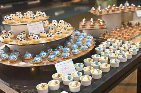 歓談タイムにはおふたりのすきをぎゅっと詰め込んだ当館パティシエお手製のオリジナルデザートビュッフェが登場。サッカーのモチーフや、おふたりのお好きなキャラクターを取り入れたスイーツが並び、見た目も楽しい空間に。写真を撮ったり、選ぶ時間を楽しんだりと自然と笑顔があふれる、おふたりらしさ満点のデザートビュッフェとなりました。