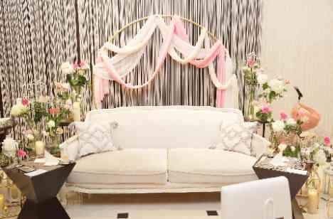 披露宴会場はご新婦様のこだわりがぎゅっと詰まったピンクを基調としたコーディネートで統一。柔らかな色合いのお花やクロスが会場を華やかに彩り、かわいらしくも上品な空間が広がります。おふたりのメイン席はソファスタイルを取り入れ、ゲストとの距離も近く、自然体で過ごせる雰囲気に。写真もより華やかに映る、おふたりらしいコーディネートとなりました。