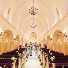 【天井高16m&全長11mのバージンロードを誇る、本格大聖堂で演出体験】全天候型だから、天候・時間にも左右されず、美しいドレス姿が叶う空間に!花嫁に人気のライティング演出など、フェアで体験しよう♪