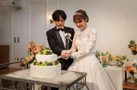 季節に合わせて、ぶどうとマスカットを使ったケーキで、秋らしさを演出! クリームのデザインひとつでも印象が変わるケーキ。 ペタペタとペイントしたようなデザインで、洗練されたオシャレさを表現しました。 シンプルからこだわりのデザインまで、 パティシエと一緒におふたりだけのオリジナルケーキが作れます。