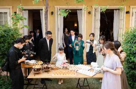 木のぬくもりと緑に包まれたガーデンで楽しむデザートビュッフェ。色とりどりのスイーツが並び、ゲストの笑顔があふれるアットホームな時間。心地よい風と甘い香りに包まれながら、会話が弾む幸せなひととき。大切な人たちと一緒に味わう特別な時間が、忘れられない思い出になります南フランスの邸宅を思わせるテラスで過ごす優雅なデザートタイム。
