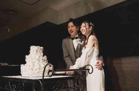 「ド緊張」と書かれた大きなカンペからスタートした披露宴。 乾杯はお子様たちにお願いしました。両家のお父様が料理人という新郎新婦がこだわったコース料理は、料理長からメニュー紹介を取り入れて。 「今までに見たことの無いウェディングケーキを」と、パティシエを1から作ったオリジナルのウェディングケーキ。大きなスプーンで盛り上がりました!