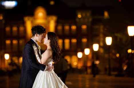 人気の丸の内でドレス、小石川後楽園で色打掛のロケーション前撮りをされました。カメラマンからのポージングの提案に恥ずかしそうなおふたり。終始、おふたりらしい笑顔溢れる撮影となりました! 結婚式当日はラウンジに前撮りのお写真やこだわりのアイテムを飾り、ゲストからもロマンティックなお写真が大好評でした。
