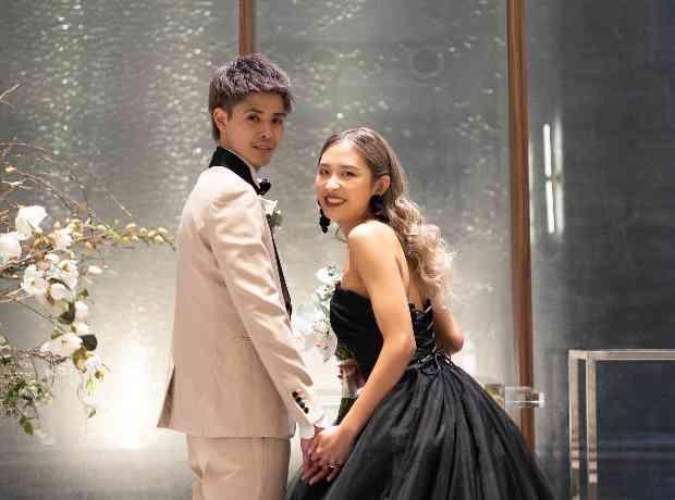 おふたりの周りに常にゲストがいらっしゃり、沢山お写真や会話を楽しむ距離感の近いアットホームなパーティーとなりました。 ペーパーアイテムもご自作でご用意くださり、ホワイト×グリーンとシンプルに仕上げた会場コーディネートにも映え、トレンド感たっぷりのおしゃれな空間になりました。 お色直しは新婦様こだわりのBlack Dressをお選びになり、ゲストからも大好評でした!
