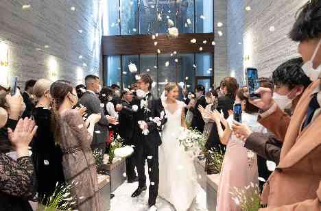 おふたりらしい終始笑顔溢れる明るい挙式となりました。 退場シーンはL2126オリジナル演出"フラワースコール"のサプライズ!ゲストの拍手と花びらに包まれ、華やかなシーンとなりました。 挙式後は新婦様から女性ゲストへブーケトス、新郎様から男性ゲストへブロッコリートスを行い、大変盛り上がりました!!