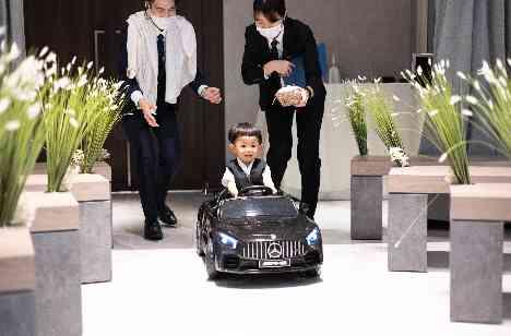 挙式では、新郎様と同じカラーのタキシードをお召しのおふたりのお子様がリングボーイとしてかっこよく車に乗って登場!!! 会場内からは「可愛い~!」「頑張れ!」とお声があがり、ファミリーウェディングならではの温かい雰囲気となりました。 ウェディングキスではなく、ファミリーキスで誓いをたてられました。