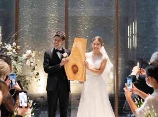 アットホームで心温まるチャペルでの挙式の後、退場シーンにお二人がセレクトした天然のアロマをたっぷり染み込ませたフラワースコールの演出を。ゲストと距離が近い肩ひじ張らないパーティーがご希望のお二人。ゲストの大きな拍手と素敵なアロマの香りがふわっとゲストを包み、何年経っても忘れない感動的な空間になりました。