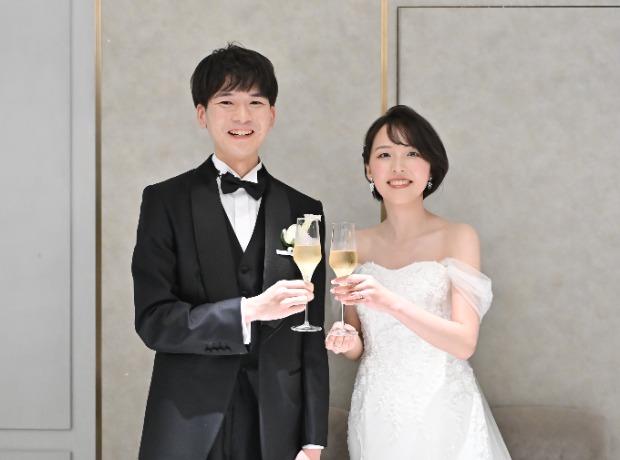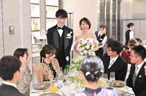 ご挨拶・乾杯と進み、パーティがスタート☆ 皆様に直接感謝の気持ちを伝えたい!というお二人の想いから、各卓へのご挨拶と歓談のお時間がスタート! 結婚式だからこそ伝えられる想いやゲストとの大切な時間を楽しまれていたお二人。 肩肘張らないリラックスした空間でお話も弾み、たくさんの笑顔で会場があふれました♡
