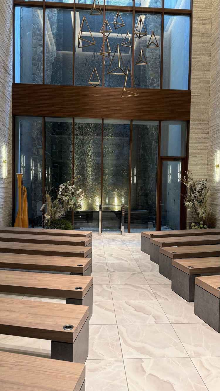 窓がなく閉鎖的で、他の広い式場に比べると開放感がなかった。 また、エレベーターや階段での移動が多く、動線が気になった。