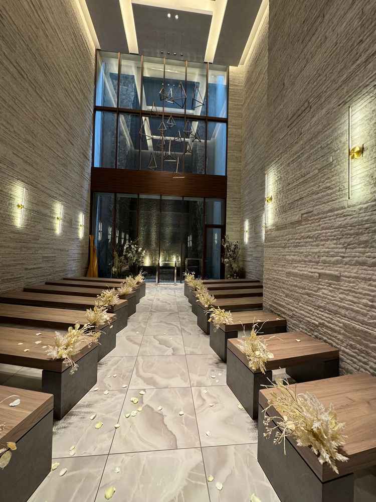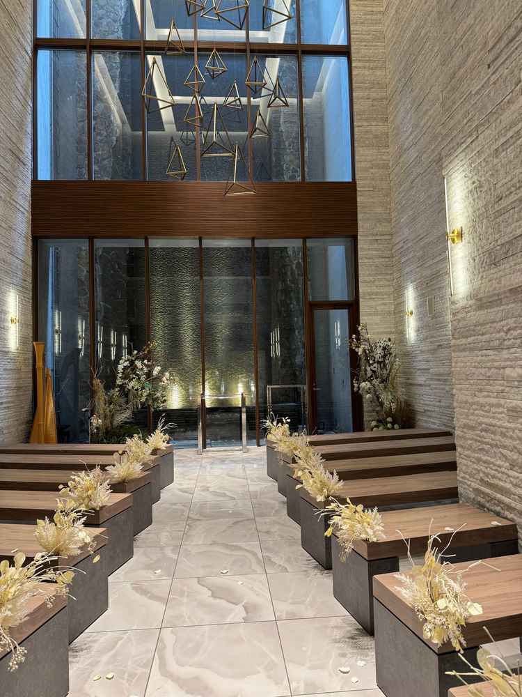 シンプルで自分達で演出を工夫できそうな会場でした。ただやはり参列者70名で考えていたので少し狭いと感じました。