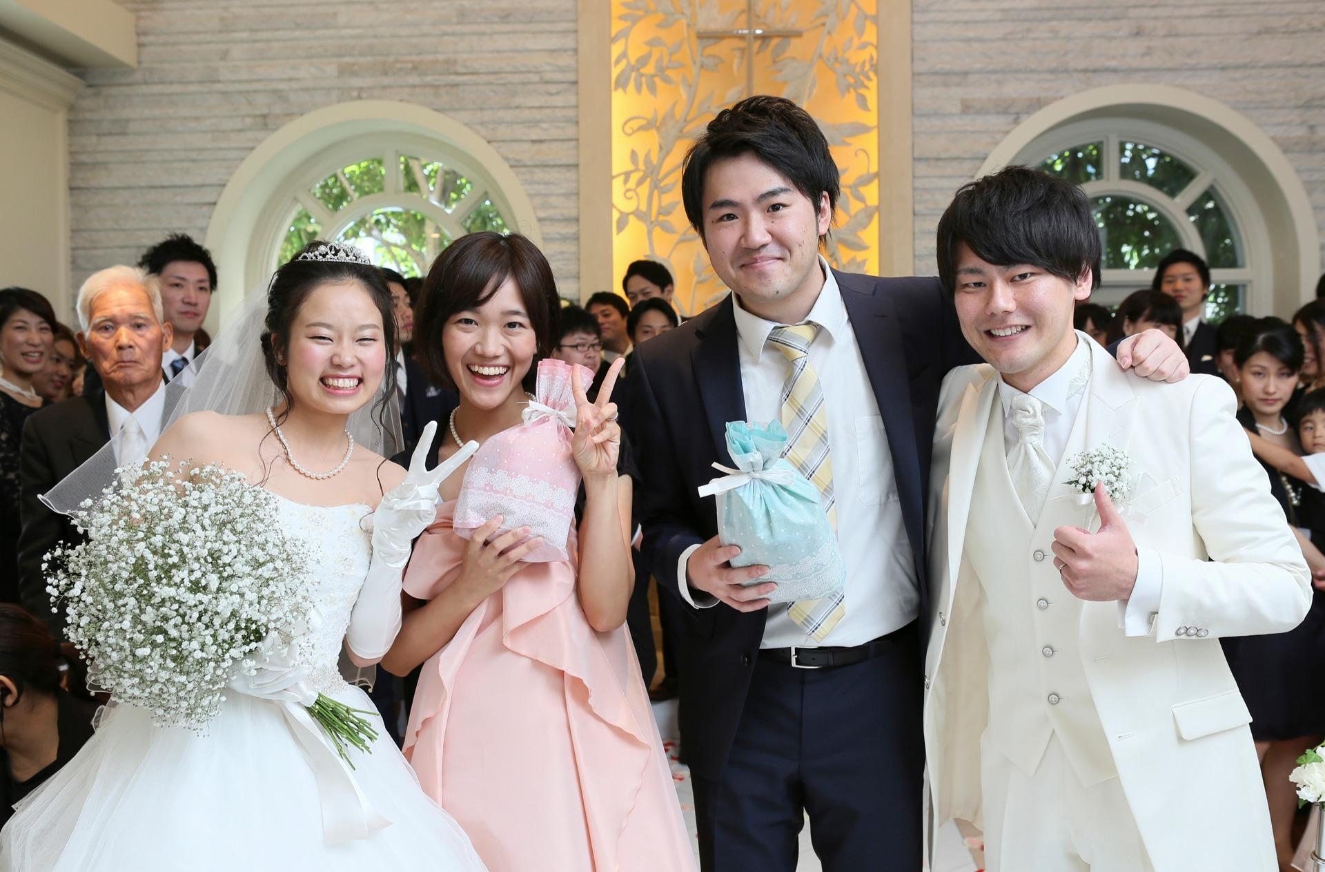 少し緊張していらっしゃましたが、おふたりらしいとっても素敵な笑顔でご入場でした!「皆様に笑顔で楽しんで頂けるように」という願いをこめてブーケトスではく、女性ゲスト、男性ゲストそれぞれにお菓子トスを行いました^^