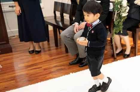 親御様よりベールダウンとエスコートをいただき歩まれるご新婦様そっとご新婦様の背中を優しく後押しするお父様の姿がございました♡そしてとっても可愛らしいリングボーイがお二人のご結婚式のお手伝いをしてくださいました!!緊張されている表情の中一生懸命お二人のもとへ大切な結婚指輪を運んでくださいました♡そんなキュートなゲストによって挙式空間は笑顔がこぼれ和やかな雰囲気に♪