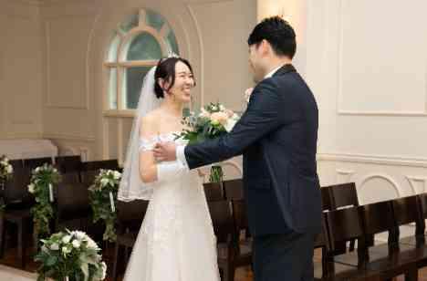 ファーストミートは、自然光が降り注ぐ温かなチャペルで行われました。天井の高さが圧倒的なスケール感を演出し、その瞬間をよりドラマチックに彩ります。溢れる自然光が二人を優しく包み込み、お互いの姿を見た瞬間、感動がさらに倍増。まるで映画のワンシーンのような特別な空間で、二人の愛がさらに深まる感動的な瞬間が生まれました。