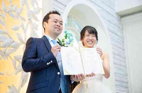 ゲストの皆様に向かって、お二人の永遠の愛を誓う「人前式」を選ばれたおふたり。当日は、親御様にも寄り添っていただきながらご入場。当日お越しいただいたゲストの皆様のご署名入りの結婚証明書に、お二人のお名前をしっかりと書きとめ、ご披露されたお顔は満面の笑みがこぼれました♪ゲストの皆様にとってはシャッターチャンス!
