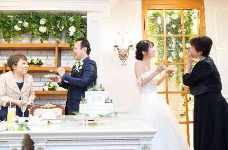 お二人こだわりのローズマリーとフルーツをあしらったウェディングケーキに入刀したあとは、お互いに「あーん」と一口ずつファーストバイト。さらに、お二人のお父様とお母様にも、サンクスバイトで今までの感謝を伝えます♡ 少し照れくさそうな親御様の笑顔も素敵な想い出に。「今まで育ててくれてありがとう」の気持ちを込めて・・・