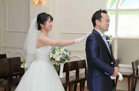 ご新婦様のウェディングドレスは、当日までご新郎様にサプライズでした♡当日のお仕度を別々にお済ませになり、先にチャペルで待つご新郎様のお顔には少し緊張感が・・・! いざ、ご対面の瞬間、それまでの緊張がうそのように、リラックスしたお二人に笑顔が輝きました! この瞬間を胸に、お二人の幸せが永遠に続きますように♡
